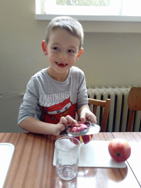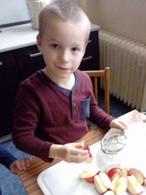 V školskej kuchynke si každý žiak očistil a odšťavil pár jabĺk.