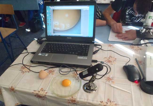 mikroskop a tak si každý žiak vyskúša prácu s mikroskopom. Vyučovanie