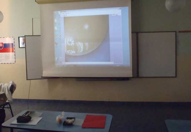 cez PC a projektor prenesie na premietacie plátno a žiaci vidia